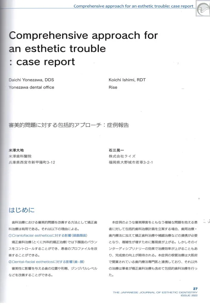 日本発・世界を牽引する最新審美症例集」にて『審美的問題に対する包括的アプローチ』